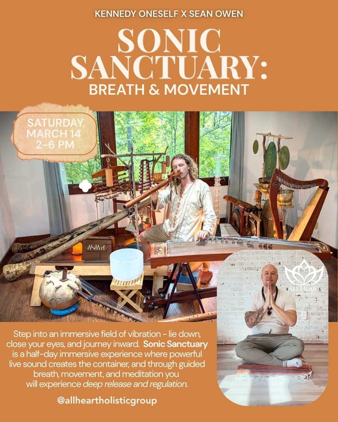 🌿 Sonic Sanctuary Breath, Movement & Multi-Instrument Sound Healing Journey w/ Sean Owen + Kennedy OneSelf Sonic Sanctuary: Breath & Movement is a half-day immersive healing experience blending guided breathwork, embodied movement, meditation, and live multi-instrument sound healing. This journey invites you into a deeply held container where sound becomes the sanctuary. As layers of […]